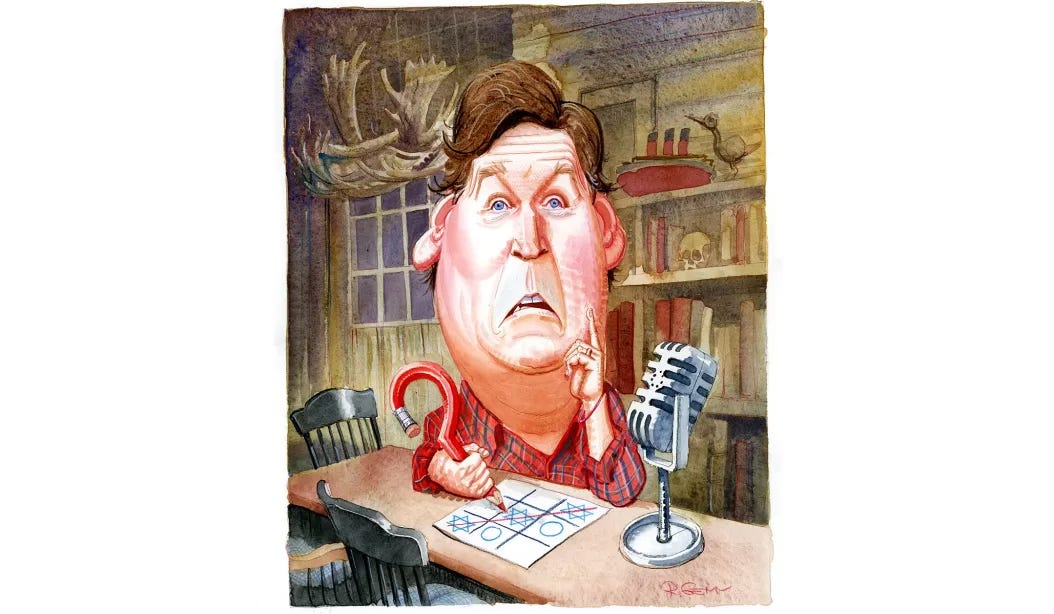 In 2022, I noticed a disturbing pattern in the national political conversation. Tucker Carlson, with whom I had been friendly for 15 years, was making creepy comments about Jews. After Carlson was fired from Fox News the following year, he started a podcast, where he has had free rein to indulge his increasingly conspiratorial obsessions, chief among them the allegedly malign influence of Israel and its supporters on the American body politic. I started listening closely, and the fruit of my labors can be found in the August issue of National Review in the form of an essay entitled Tucker Carlson’s Dark Turn. Please give it a read, and if you feel so inclined, share it with your friends and on social media.
